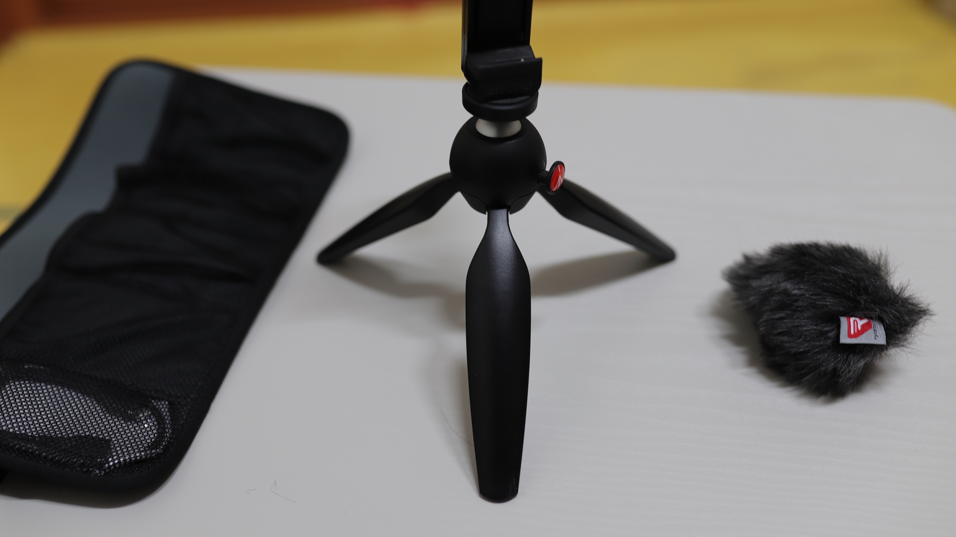 일단 구성품을 살펴보면 본체, 윈드스크린, 마이크 마운트, 스마트폰 홀더, 삼각대, 아이폰용 라이트링 케이블, 안드로이용 5핀 to USB C 케이블, 롤링 케이스로 구성된다.