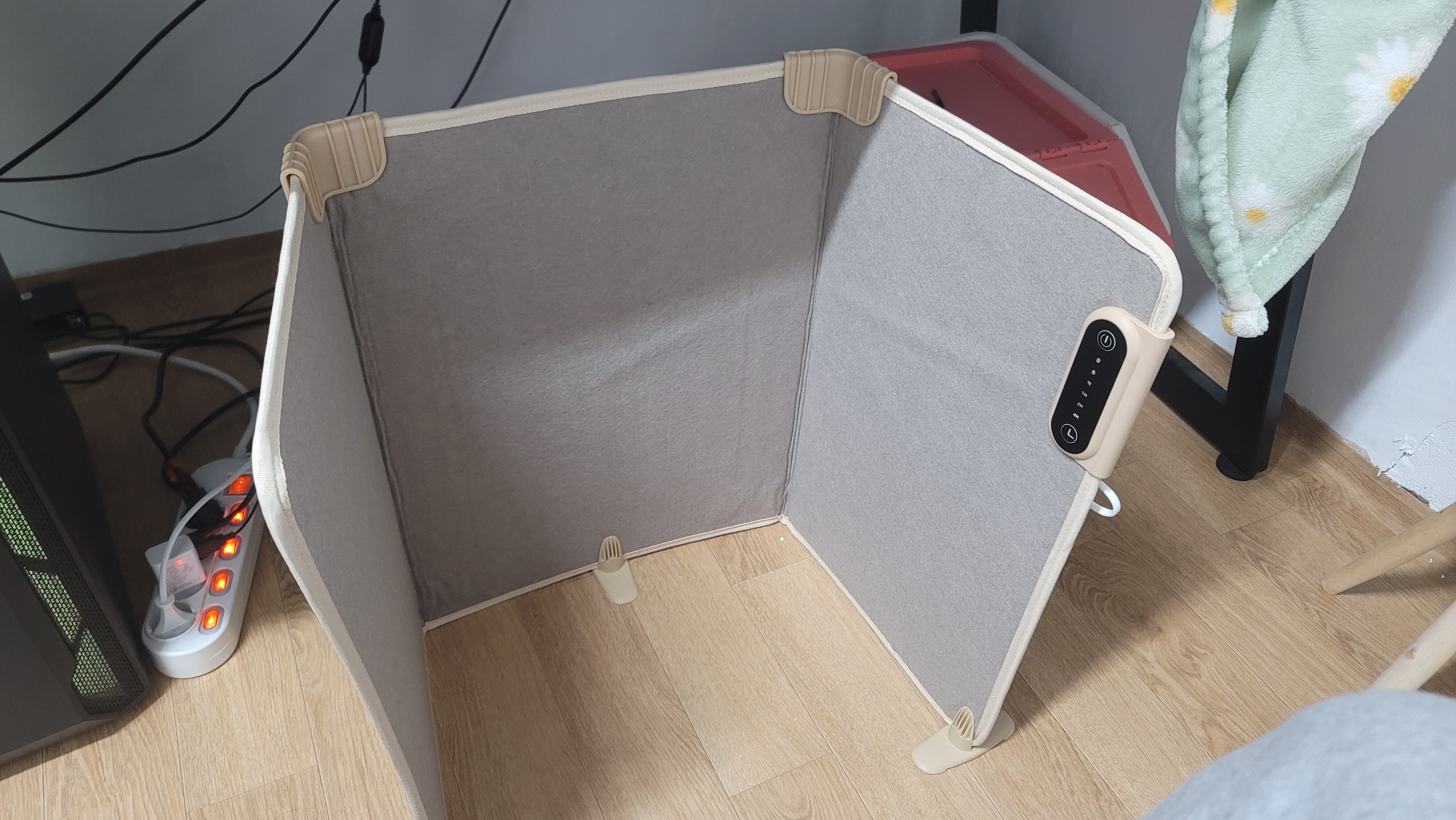 제품을 구매하기 전 난방효과가 거의 없다고 하는 리뷰를 종종 목격하게 되는데 사실 걱정이 많았다. 사용설명서에는 제품위에 담요 등 덮지 말고 사용하라고 하는데, 그렇게 되면 실제로 효과가 별로 없긴하다. 내 경우는 담요를 같이 덮어서 사용하기에 효과는 괜찮은 편이다. 아마 화재때문에 담요랑 같이 사용하지 말라고 하는거 같은데 반드시 자리를 비울때는 꺼두는 습관이 필요하다.